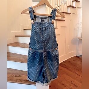 Gap kids denim polka dot short overalls XXL or 16 18 girls. Never worn - my daughter pulled the tags off but never wore them. Blue and white dots.