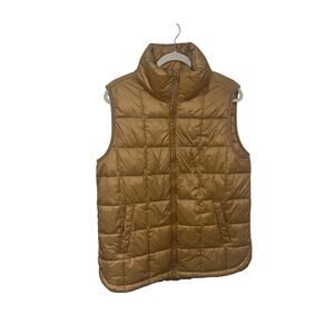 Elevate your style with this stunning Gap oversized puffer vest! The beautiful gold color adds a touch of glamour to any outfit, making it a versatile piece for your wardrobe.