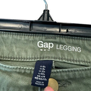 Olive color leggings with pockets, size 8 regular, waist 16, rise 9, inseam 28