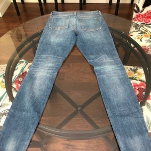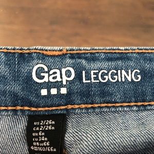 Excellent condition! Patches and rips down the front of the legs. Pockets are functional and there is no wear or tears! They are Gap legging jeans