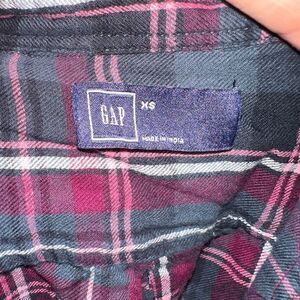 Gap pink & gray plaid tartan flannel long sleeve XS shirt