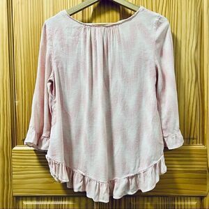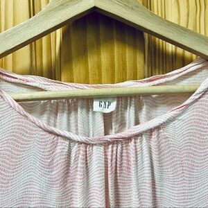 Gap pink white curved hem ruffle scoopneck long sleeve oversized shirt top S