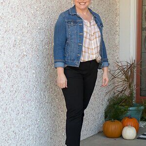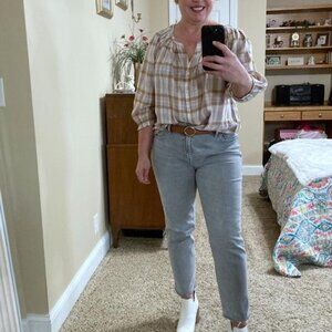 Plaid 3/4 sleeve top from Gap. Gently worn. 55% cotton/ 45% rayon. Cool and comfortable for those early fall days. Smocked yolk. Bust 40 inches length 22 inches