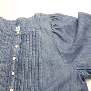 Gap pleated buttoned puff sleeve denim women's shirt Size S