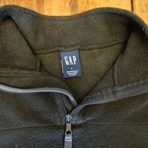 tags Gap fleece sweater sweatshirt Black men's size large zip up pullover pockets drawstring quarter zip spring layering