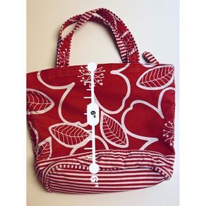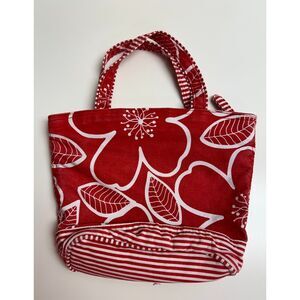 Gap red floral cotton shoulder bag. One internal zippered pocket. Internal lining is red and pink small flowers print which contrasts with the red and white large floral print on the outside of the bag. I love the print of this bag...its cheery for a rainy day.