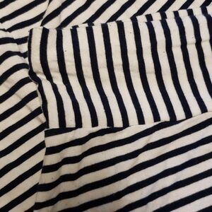 White and navy striped knit Maxi skirt. Wide waist band. Rayon spandex blend. EUC. 17 inches across waist. 38 inches waist to hem.