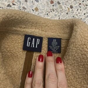 Gap suede brown leather Sherpa lined jacket coat XS vintage note: small flaw shown in last pic. I have not attempted to remove