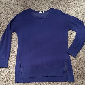 Euc, violet blue color Gap sweatshirt. Fleece inside, crew neckline, long sleeve. Length from shoulder to bottom is approx 28” with 1.75” longer in back. Armpit to armpit is approx 22”