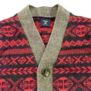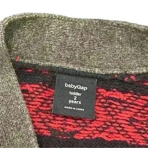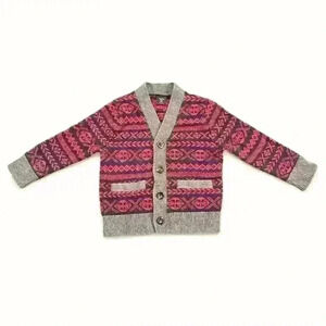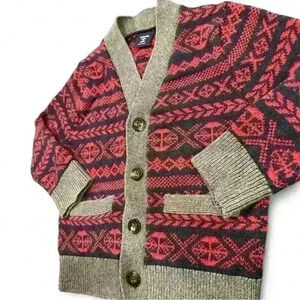 EUC babyGap Fair Isle knit button down cardigan sweater with cute little pockets. Red and blue striped geometric pattern. Great for holiday get togethers, family festivities, church, fall outings, Christmas or thanksgiving parties, or any occasion- dress it up or down! Looks nice layered with a collared butting down shirt, suspenders and corduroys 😊