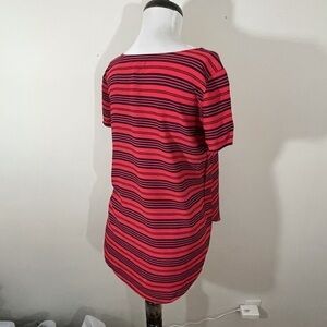 Super nice casual piece with the look of a nautical style. Top stitching down the front sides similar to a workout top. Nice movement. Very nice quality piece. The chest measurement is around 18 inches. Perfect summer top with white or denim bottoms. No visible flaws. Any questions please ask. Will answer questions as soon as possible