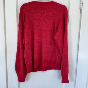 Ah! I love this sweater - it's the most vibrant, festive red and it's soft and comfortable. I wore it twice - no exaggeration; I saw myself in a photo with it and realized red isn't my color even though I so want it to be!