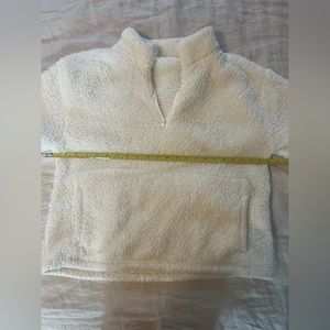 Excellent used condition furry fleece jacket from gap. Slightly off-white color measurements in pictures slight pilling on the bottom. Hem of the jacket. See pictures for details.