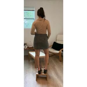 - Gray plaid mini skirt with button details on the front and back of the skirt