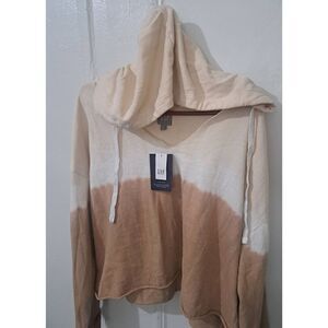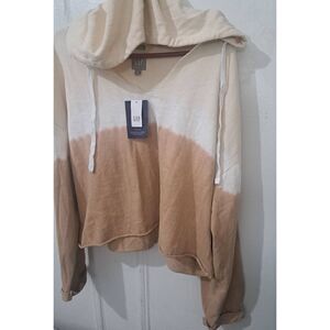 Gap womens xl slouchy cozy pullover hoodie sweatshirt tan tie dye beige