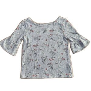 Gap x Disney Bambi gray t-shirt 3/4 ruffle sleeve kids size S woodland animals