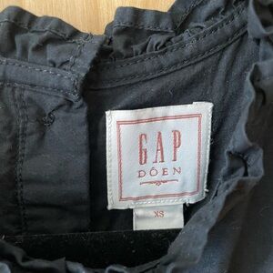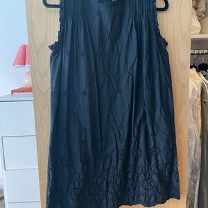 Chic black mini dress from the Doen x GAP collab. Features a sleeveless design with delicate detailing. Perfect for versatile styling. Cotton poplin