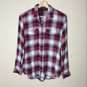 Gap x Pendleton Flannel Shirt S Red Blue Plaid Boyfriend Fit Wool Blend Preppy