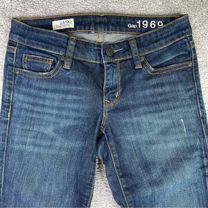 Gap 1969 Jeans Women's 24 Blue Skinny Low Rise Dark Denim Distressed