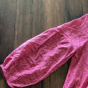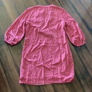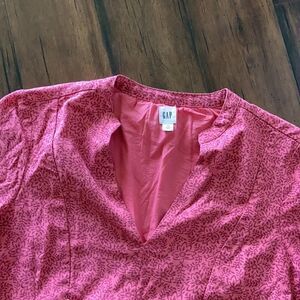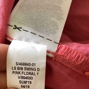 Gap Bib Dress Split Neck Swing Style Pink Floral Print Puffy 3/4 Sleeve XS