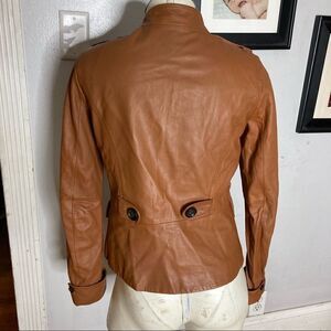 Gap Brown Leather Asymmetrical Button Up Moto Jacket Sz Small
