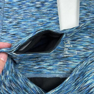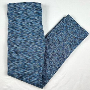 GapFit “Blackout Technology gFast” style striped/heathered athletic cropped leggings in Blue Spacedye colorway. Drawstring on inner waistband, small hidden pocket on back of waistband. Super opaque, but don’t feel overly thick, moderately stretchy. Great for working out at the gym, walking, hiking, running, lounging, etc. Size XS.