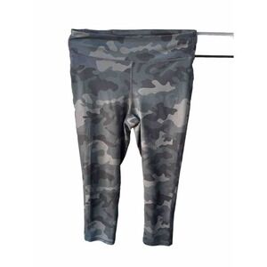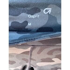 Elevate your workout wardrobe with these GapFit High Rise Print Capris in size medium. Perfect for gym and training, yoga, running and jogging, these leggings feature a stylish camo print that adds a touch of edginess to your activewear collection. The pull-on closure and elastic waist provide comfort and flexibility, while the compression area on the waist and leg offers support during intense physical activity.