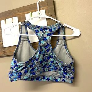 GapFit Pullover Blue and Gray Floral Pull-Over Sports Bra- Large
