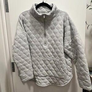 GapFit Quilted Jacquard Half-Zip Pullover Heather Grey Fit: Relaxed. A straight & easy fit. Hits just below the hip. In good used condition