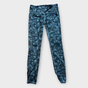 GapFit Womens Leggings Zip Pocket Logo All Over Print Black Gray Size Small