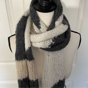 Gap Hand Knit Acrylic Wool Nylon Alpaca Blend Winter Scarf, Charcoal & Cream