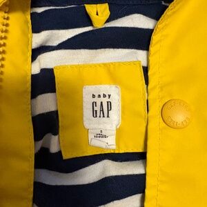 GapKids Hooded Rain Jacket - Yellow exterior with white/navy stripe interior - size 3T. Great used condition.