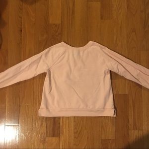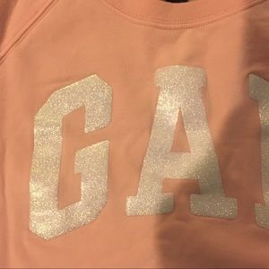 Peach colored sweatshirt with sparkly front logo. Add some sparkle to your life with this cozy sweatshirt! 60% cotton 40% polyester, machine wash tumble dry.