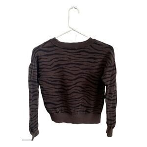 Gap-Kids-Soft Knit-Puff Sleeve-Sweater-100% Cotton-Brown-Zebra Print-Girls-L