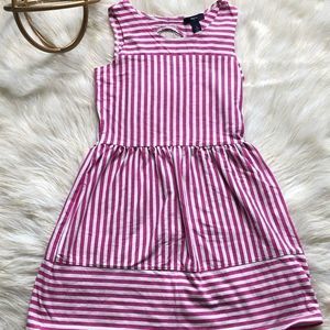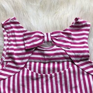 Super cute gently used pink and white striped dress with a bow on the back. Smoke and pet free home. Size 10/11