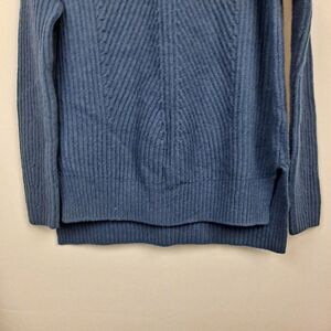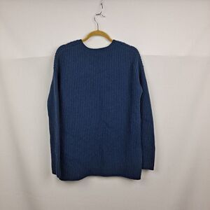 Deep blue, size small. Boyfriend, crewneck pullover with long sleeves. Heavyweight wool, nylon, cashmere blend. Hi-lo hem with side slits.