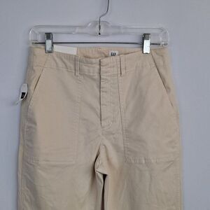 Light khaki, size 2. Zipper fly front with pockets, back has 2 flap pockets. Measures 28" waist, inseam is 27" .retail $60.