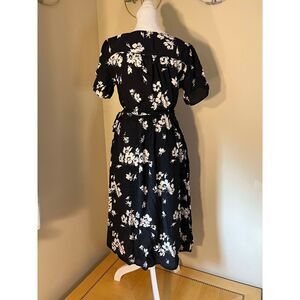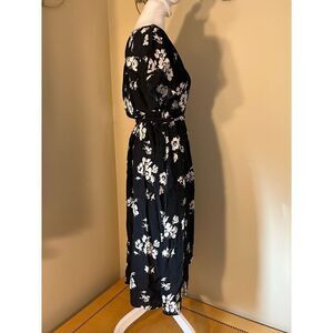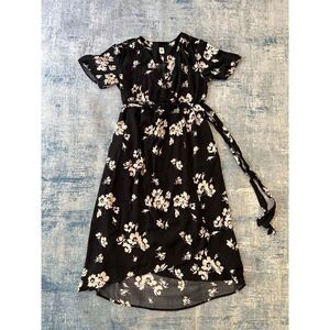 Gap Maternity Black White Floral Faux Wrap Belted Dress XS