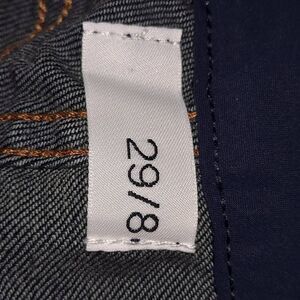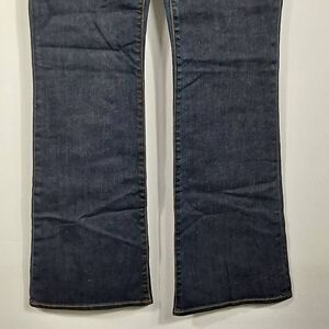 Beautiful deep blue wash, size 29/8. Pullon style with faux fly front and 5pocket style. Flared leg. Measures 32" waist, inseam is 32". Fabric is 98 cotton, 2 spandex.