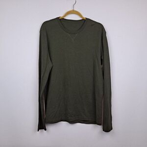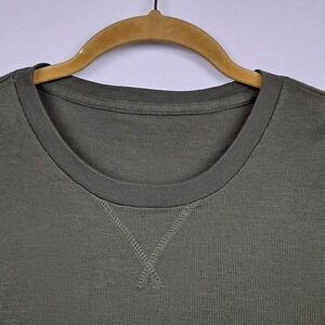 Olive green, size medium. Crewneck pullover with long sleeves. Nice weight fabric. Measures 40" chest, length is 29".