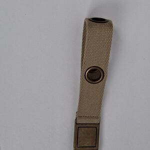 Natural color with brass hardware. Adjustable length. 35" - 39". Beautiful, heavyweight. Width is 1.5". Retail $ 28.