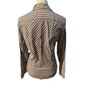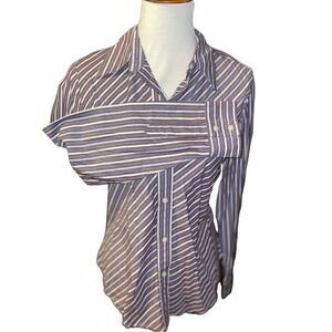 Gap Plum Striped Button Down Tailored Fit Long Sleeve 100% Cotton Top Size Mediu