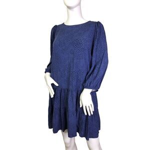 Gap Tiered pocket Dress 3/4 Sleeves blue dot size 6