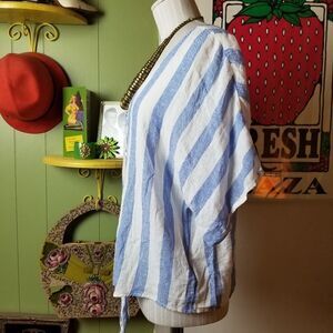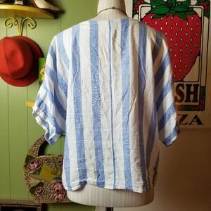 Gap White Blue Linen Tie Shirt Small