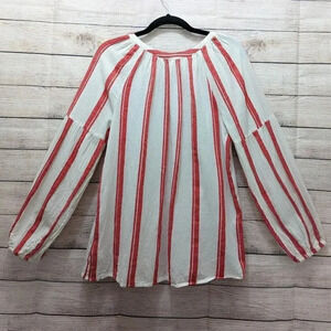 Gap Women's Size M Split Neck Blouse Frame Zen Red Stripe Beige Long Sleeve Top.