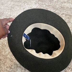 Moss green hat with black leather band in NWT condition. M/L