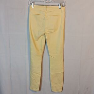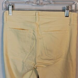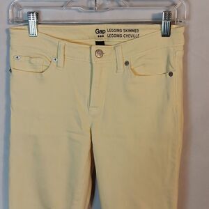 These yellow stretch denim Gap low rise skinny jeans are a size 0 with a waist measuring 14" laying flat an inseam of 28" and a front rise of 8". Five pockets. In excellent condition. All offers are welcome.