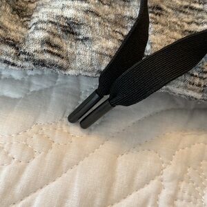 GapFit sweatshirt in an oversized boxy fit. Textured fabric in Heathered black and white. Back and front center seams and drawstring at waist.