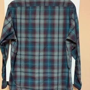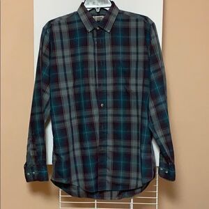 Gap shirt green green/maroon check medium button down color little dot on the edge of the right sleeves see pictures.