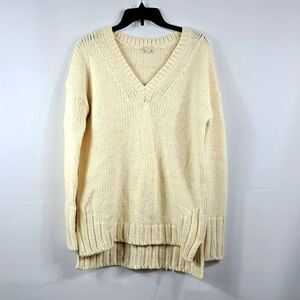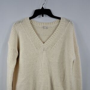 Beautiful off white, size small, V neck sweater! Large knit, very soft. Side slits, long sleeves.